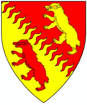 Per bend rayonny gules and Or, two badgers rampant counterchanged.N