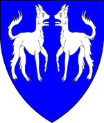 Azure, two wolves passant respectant argent