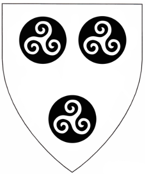 Argent, three pellets each charged with a triskelion of spirals argent |