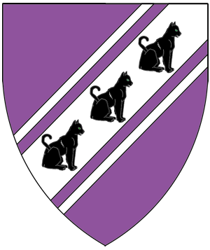![]() Purpure, on a bend sinister cotised argent three domestic cats sejant to sinister palewise sable. |