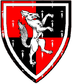 ![]() Quarterly gules and sable all ermined, a fox rampant contourny within an orle argent. |